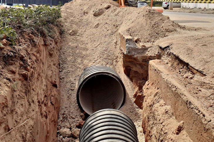 Drenagem é o ato de escoar as águas de terrenos encharcados por meio de tubos, túneis, canais, valas e fossos, sendo, possível, recorrer a motores como apoio ao escoamento. Os canais podem ser naturais (córregos) ou artificiais (de concreto simples, concreto armado ou gabião). Os sistemas de drenagem podem ser urbanos ou rurais e visam a escoar as águas de chuvas e evitar enchentes.